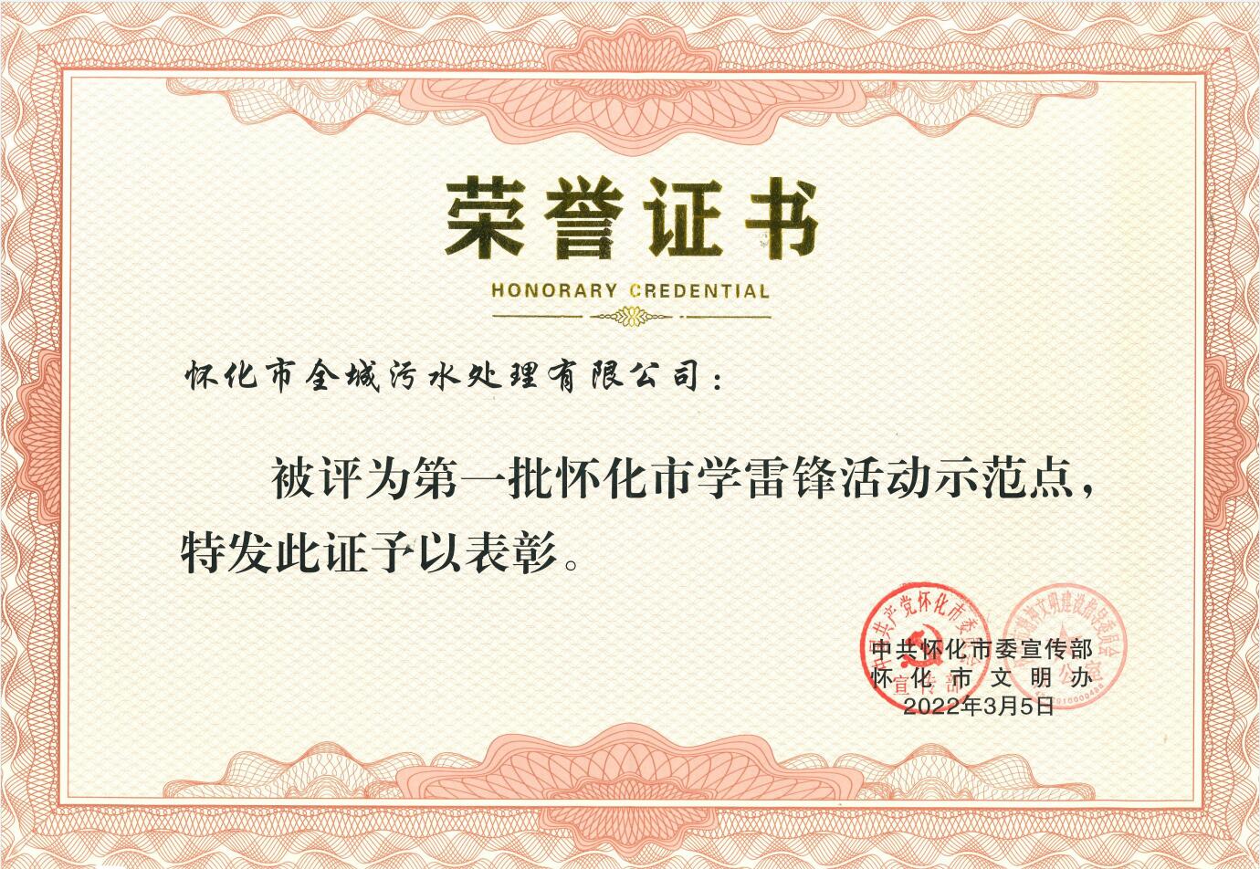 2022年3月被中共懷化市委宣傳部評(píng)為懷化市第一批“學(xué)雷鋒活動(dòng)示范點(diǎn)”榮譽(yù)稱號(hào)